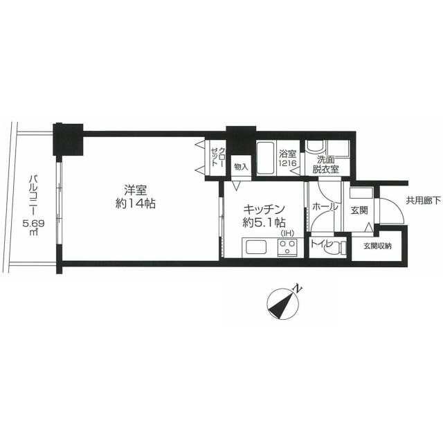 | 間取り(内訳) | 1DK(洋14DK5.1) | ||