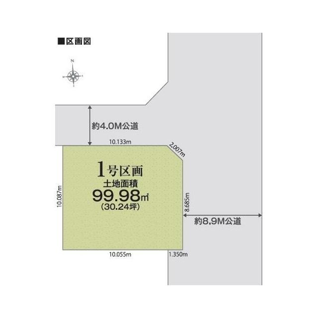 | 土地面積 | 実測 99.98㎡ | 坪数 | 30.24坪 | 坪単価 | 66.10万円 |